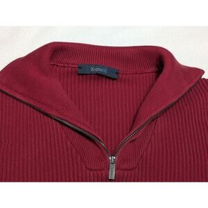 Zegna Sport 1/4 Zip Sweater Wool Maroon Red Long Sleeve Men's Size Medium