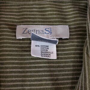 Zegna Sport Mens Size Medium Double Pockets Green Striped Long Sleeve Button Up Shirt Made in Italy