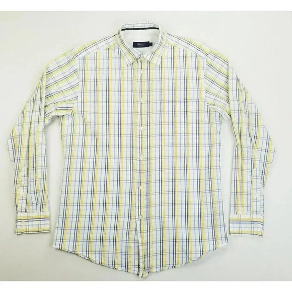 Zegna Sport Size Medium Regular Fit Men's White Blue Yellow Check Cotton Shirt