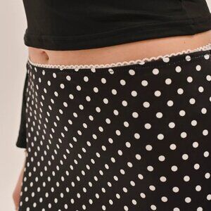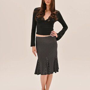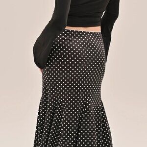 Soft, breezy, and effortlessy chic the Zeia midi skirt in black and white polka dots is made for those dream nights, With a low-rise fit, midi length, and fully lined for the the perfect drape, its a timeless piece that moves with you.