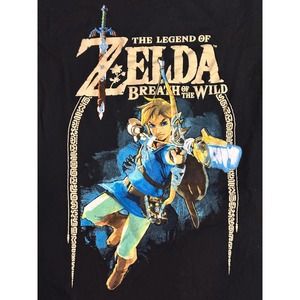 Preowned Zelda Breath Of The Wild Link Arch Shot Logo Graphic T-Shirt in size medium. Please see photos for visual detail.
