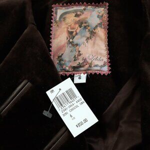 Zelda Dark Brown Velvet Blazer Jacket Leather Trim Fitted Lined New NWT Size 6
