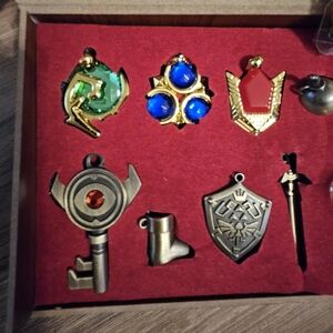 Legend of Zelda necklace kit. Box design with gold accents. Perfect for collectors and fans of the games.