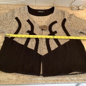 Zele Black and Tan Cardigan Sweater Size Small Button Flax & Cotton