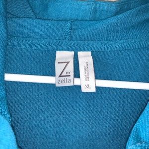 New, never worn Zella Active hooded zip-up jacket with ruched sleeves. Teal surf heather size XL.