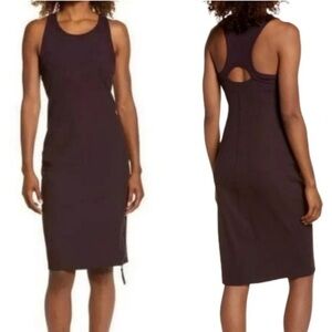 Zella Activewear Keyhole Ribbed Zipper Detail Midi Dress