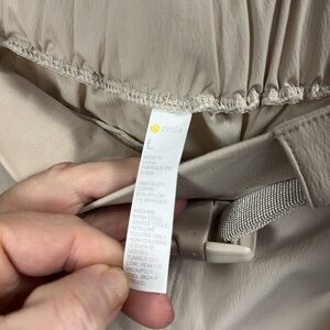 Zella All Day Tan cargo utility shorts size large. NWT. Inseam is 3.5” and rise is 12.5”. Laying flat waist is 17”