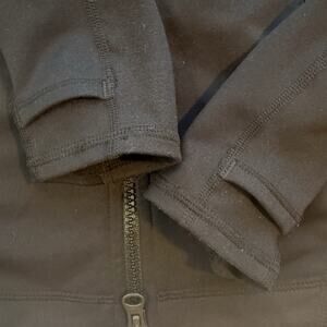 Stay cool and stylish with this Zella Black Zip Track Jacket in Women's Small. Made from a stretchy performance blend, this jacket features strategic mesh panels on the sleeves and back for breathability and moisture-wicking comfort. Designed with thumbhole cuffs for chilly workouts and a sleek athletic silhouette perfect for layering or on-the-go wear.