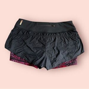 Stylish women's shorts featuring a sleek black design with vibrant pink accents. Perfect for casual outings or active wear.