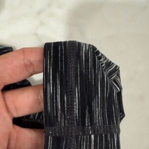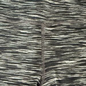 Comfortable leggings with a charcoal and light gray stripe design. Ideal for fitness or everyday wear.
