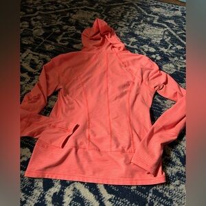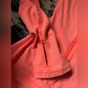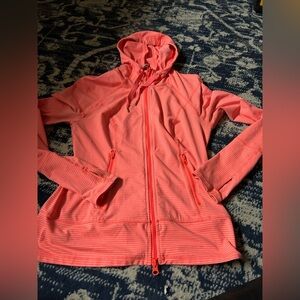 Zella coral striped full zip-up hoodie with a hood, thumb holes, and front pockets. Perfect for casual wear. Great condition.