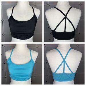 EUC. Zella Criss Cross Sports Bra Bundle Size Large. One black one aqua blue/ turquoise.