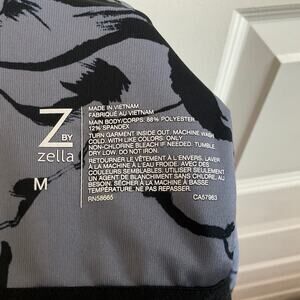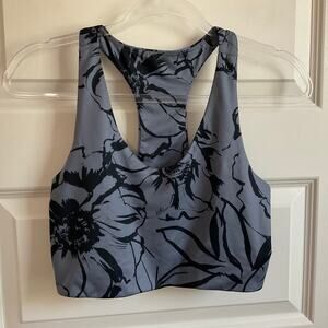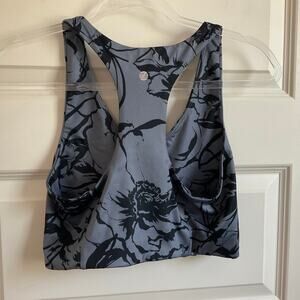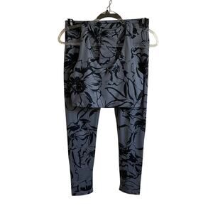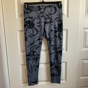 Zella dark floral sports bra and cropped leggings matching set. Grey with a black print. The leggings have a small spot. Please review all photos. No other flaws or signs or wear.