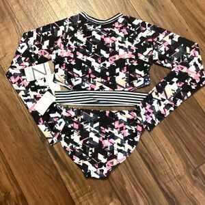 Zella Girl Sand & Sea Long Sleeve Two-piece Rashguard Swimsuit Black/Multi S14