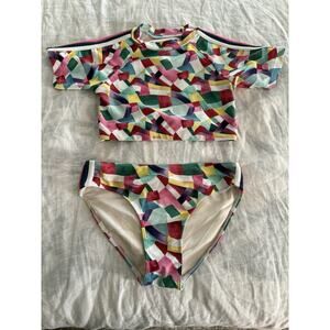 The Zella Girls Geometric Rainbow Bikini in size 10 is a colorful and stylish swimwear option for girls. With a geometric pattern in a multicolor design, this bikini is perfect for girls who love bold and eye-catching outfits. The Zella brand ensures quality and durability, making this bikini a great choice for children who will be wearing it to the pool or beach.