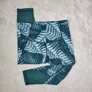 Stay stylish and supported in these high-rise cropped tights from Zella. Featuring a vibrant green palm foliage print with mesh insets for breathability and flair, these leggings are perfect for workouts or athleisure looks. Designed with a hidden waistband pocket for small essentials, they combine performance with style.