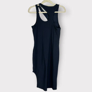 Zella Interlude Rib Cutout Dress Women's Large Navy Blue Sleeveless Knee Length