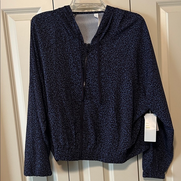 Lightweight hooded jacket, purple nebula group but looks great worn with a black legging as well. Bomber style, full zip and hooded.