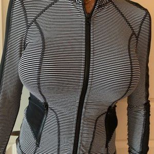 Active Wear Jacket in very good Condition, fits to Size, big Zipper, long Sleeves with cover for hands, Black & White Stripes