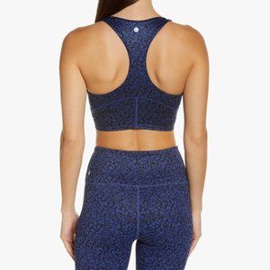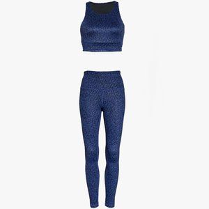 New With Tags Zella Live In Racerback Bra & High Waist Ankle Length Performance Leggings Set, Size XS (Bra & Leggings). Feel ambitious and super cute in this sports bra and leggings set, featuring stretchy and medium support racerback bra, round neckline design, removable soft cups, allover Blue Twilight Wave print, full lining. Matching leggings feature same allover Blue Twilight Wave print, moisture-wicking 4-way Zeltek fabric, hidden waistband pocket for cash or key, smooth flatlock seaming.