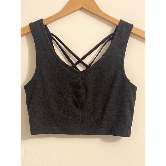 Zella Lola Live In Cropped Tank Charcoal Gray Sz Medium