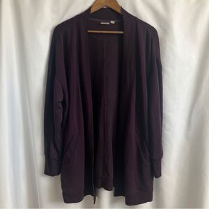 Zella Peaceful Fleece Open Front Cardigan. Color is 'Purple Nebula'. Has pockets. Soft and warm. Size XL.