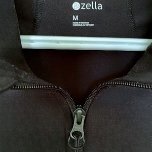 Zella Performance jacket in black. Stretchy fabric. Very fitted & sleek. Thumb holes in sleeves. Functional front pockets with zipper. Ribbed material around hem. Excellent condition!