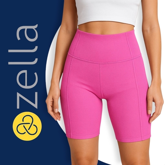 Get ready to move in style with these Zella high-waisted ribbed biker shorts! Crafted in a vibrant pink shade, these ultra-stretchy shorts are perfect for workouts, lounging, or running errands. The flattering wide waistband and sleek vertical seams enhance your figure, while the hidden back pocket adds functionality. Made from a breathable, flexible polyester-spandex blend, these biker shorts offer a snug and supportive fit that moves with you. A must-have essential for every activewear wardrobe!