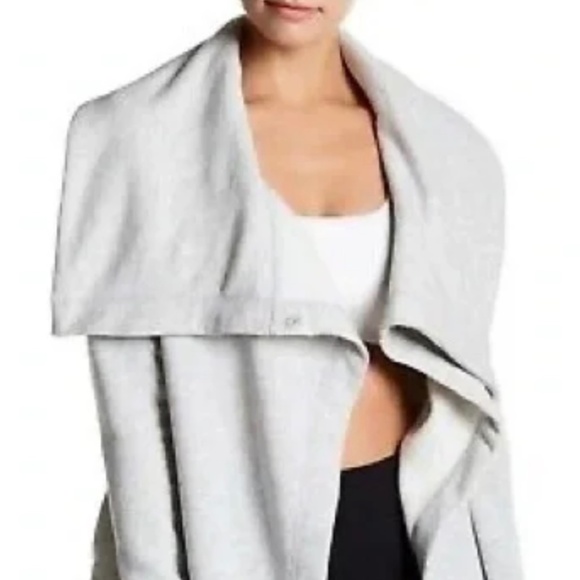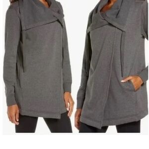 Used, great condition. Perfect comfortable layer to wear to yoga or the gym, or around town when temperatures drop. Charcoal gray goes with everything and makes even sweats look more stylish!