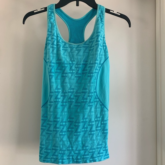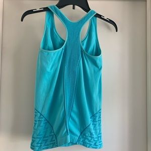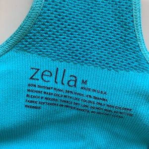 Turquoise Blue Zella racer back tank has a mesh insert down the back to help keep you cool. Super soft fabric is moisture wicking. Has a built in bra. Gently worn condition.