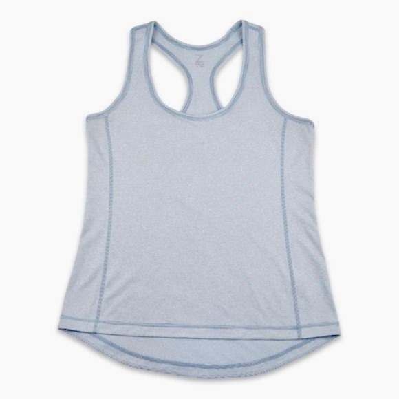 Women’s Z by Zella Gray White Micro Stripe Racerback Workout Tank Athletic Sleeveless Top