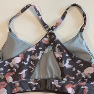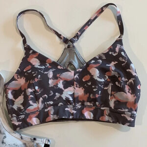 Zella v neckline, racer back, adjustable straps, gray and pink