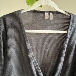 Zella ribbed wrap top in excellent condition! Super soft material, flattering silhouette, perfect for lounging or dressing up