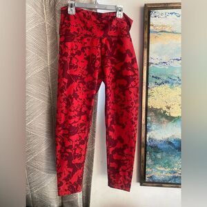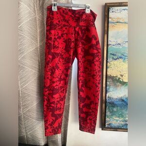 Zella Size Large High Waist Studio Lite Flex Leggings Red Burgundy Floral Camo