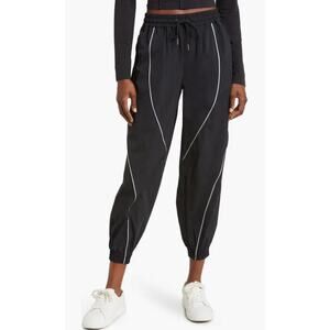 Reflective trim swerves and curves all around these high waist, lightweight pants ensuring visibility as you go out and make moves.