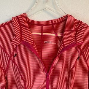 Zella Striped Long Sleeve Hoodie Track Jacket Front Zip Thumb Holes Size Small