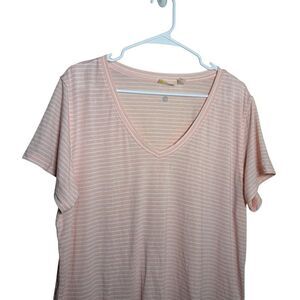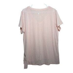 Zella T-Shirt Women's XL Pink Striped Short Sleeve V-Neck Athletic Tunic Top