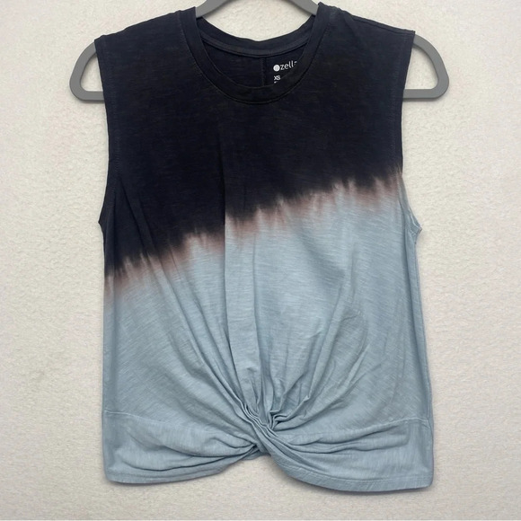Zella Tank Blouse Cropped Knot Tie Dip Dye Blue XS