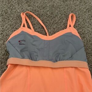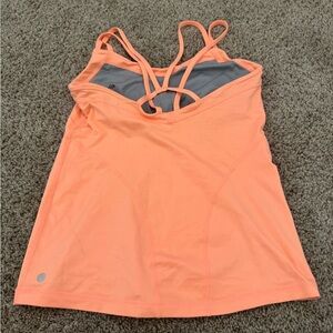 Zella TankTop Women Small Coral Orange Active Sports Halter Stretch Built In Bra