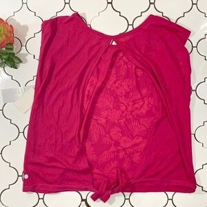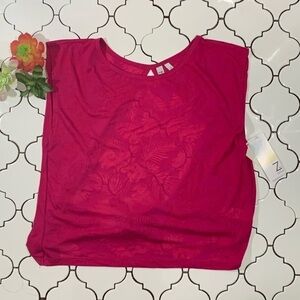 A back keyhole adds a flirty detail to this subtly printed cap sleeve T-shirt. Fit: this style fits true to size. - Relaxed crew neck.