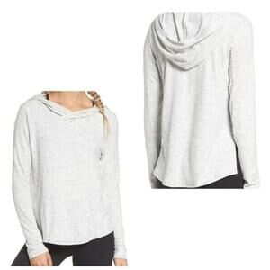 Zella Women's Long Sleeve Ribbed Knit Hi-Low Pullover Hoodie Size L Gray Lounge