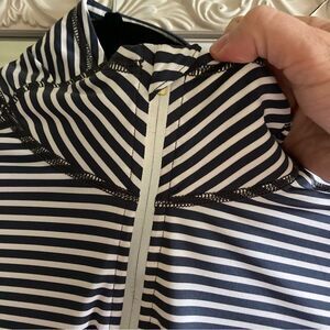 Zella Women’s small 1/4 Zip long sleeve pullover jacket - gray & white striped!