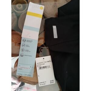 Zella Yoga + Studio High Compression Mesh Inserts Capri Leggings Black Large, in excellent pre-owned condition, never worn, still has original tags. Marked as a women's large, measurements are taken while laying flat and are approximate: (see photos)