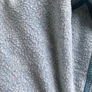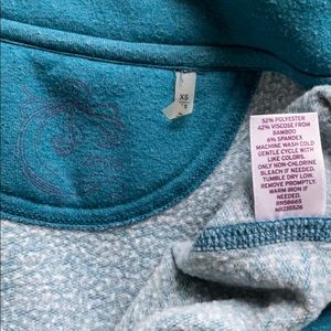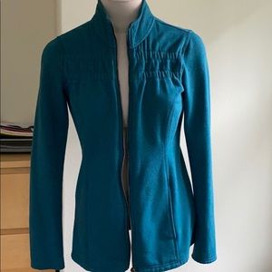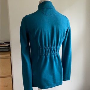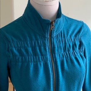 Super cozy! Fleece lined. High collar. Cinched in back at high waist. Cute seaming all over and cinching detail on high chest. Longer fit. Fits me tightly. Stretchy. Size is XS but fits more like a small or medium.