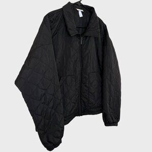 Zella Zip-Up Quilted Bomber Jacket Black Women's Medium Mock Neck Long-Sleeve