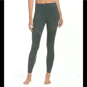 Zella size XXS high waisted green moto leggings. Full length with mesh sea tails and moto style. High waisted. Excellent used condition and fits true to size