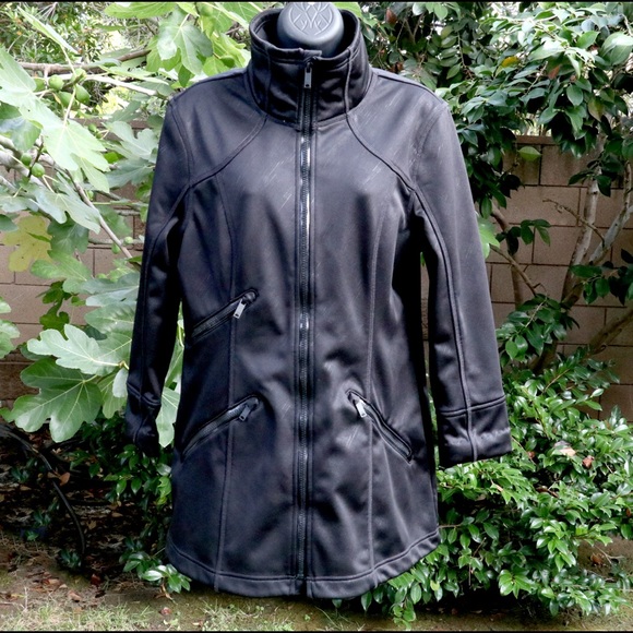 Beautiful workout jacket by Zella. This garment has barely been worn and is in pristine condition. Features include 3 exterior zipped pockets, 1 interior zipped pocket and total zip-up front closure. Fabric is a thick and stretchy polyester with spandex and nylon added to the cuffs and lining. A truly flattering fit - measures 20” pit to pit, 30” from the shoulder down and 14” sleeve inseam