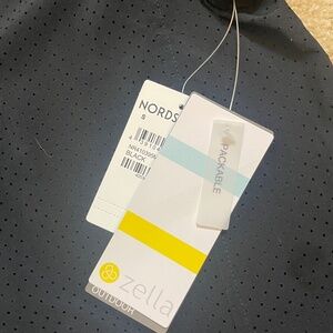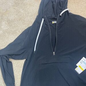 Black , mesh swimsuit coverup , NWT, lightweight , packable, large zipped pocket in front , hoodie, NWT, 88% polyester, 12% spandex