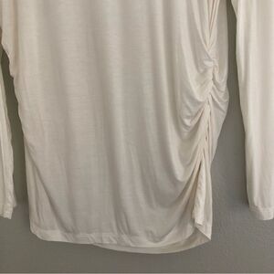 Long sleeved white maternity tee shirt with ruching at the belly. Excellent pre owned condition with all measurements being approximate