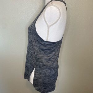 Perfect for all your workouts. Side notches and Racerback for comfort. Perfect length so it won’t ride up. Great condition.